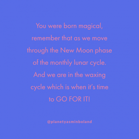 Hi, I’m Yasmin Boland. I’ll help you manifest your dream life by tapping into the power of the Moon’s lunar cycles, using ancient lunar wisdom and astrology.
