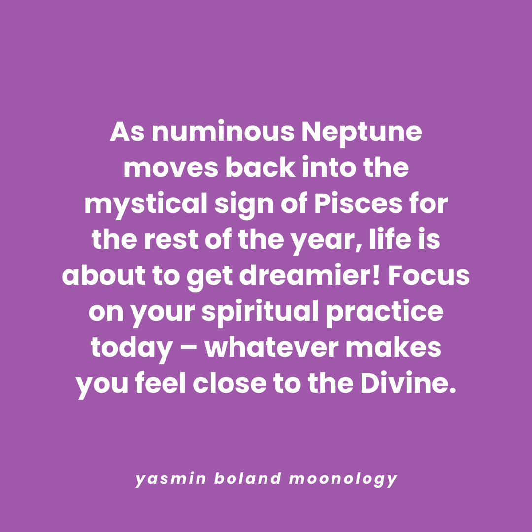As numinous Neptune moves back into the mystical sign by Yasmin Boland | Oct 21, 2025 | Daily Moon Share this:Tweet Click to email a link to a friend (Opens in new window) Email Click to share on WhatsApp (Opens in new window) WhatsApp