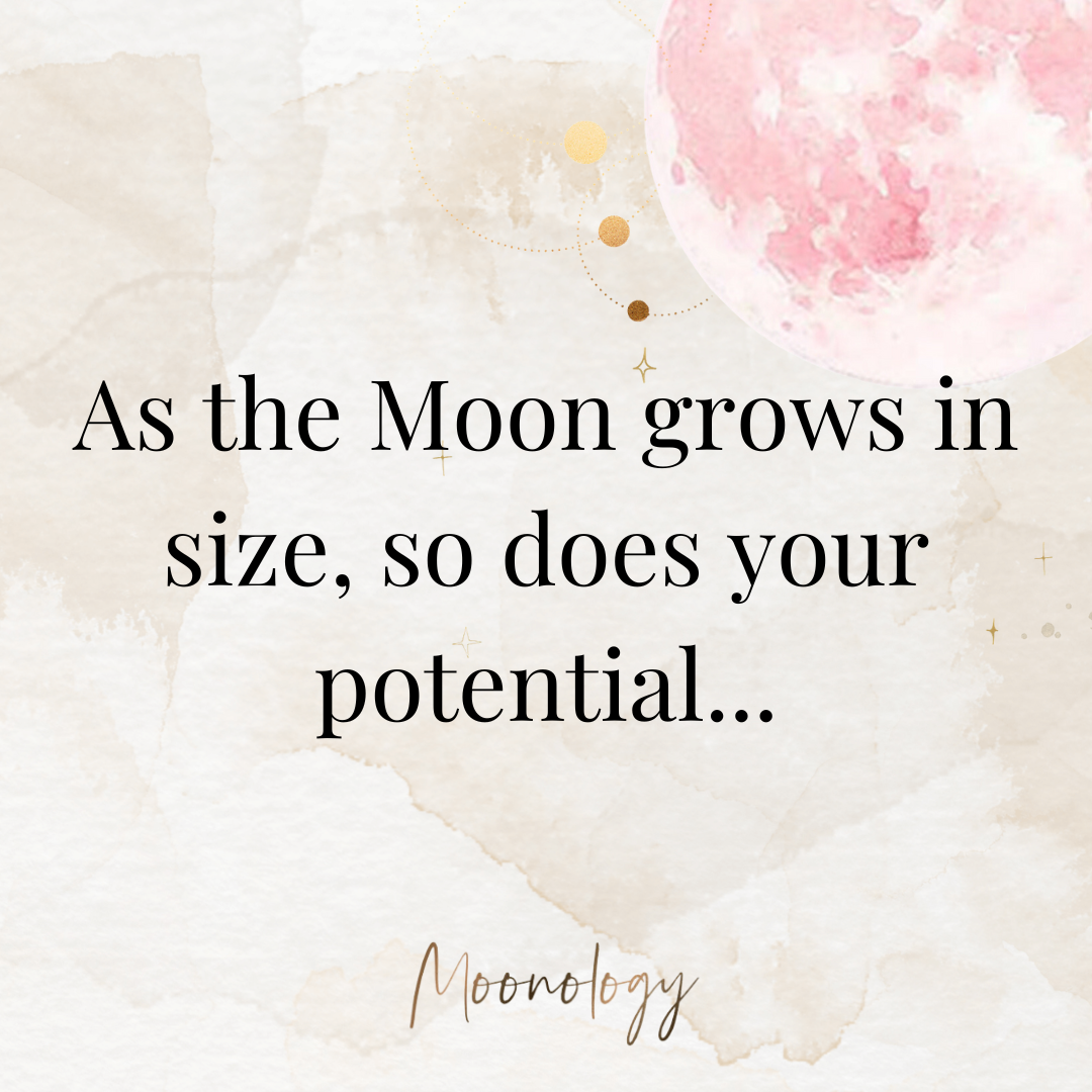 As the Moon grows in size, so does your potential. Use this time to focus on what you want to manifest in your life and take action towards making it a reality.