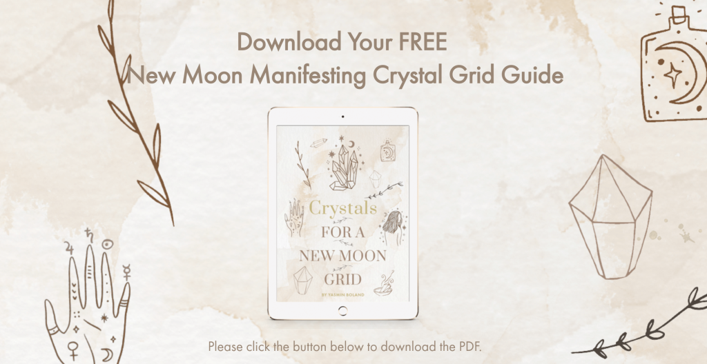 Love the Moon and crystals and want more info about how well they go together? Download your FREE New Moon Manifesting Crystal Grid Guide here!