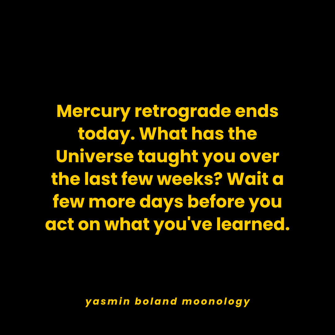 Mercury retrograde ends today. What has the Universe taught you by Yasmin Boland | Aug 10, 2025 | Daily Moon Share this:Tweet Click to email a link to a friend (Opens in new window) Email Click to share on WhatsApp (Opens in new window) WhatsApp