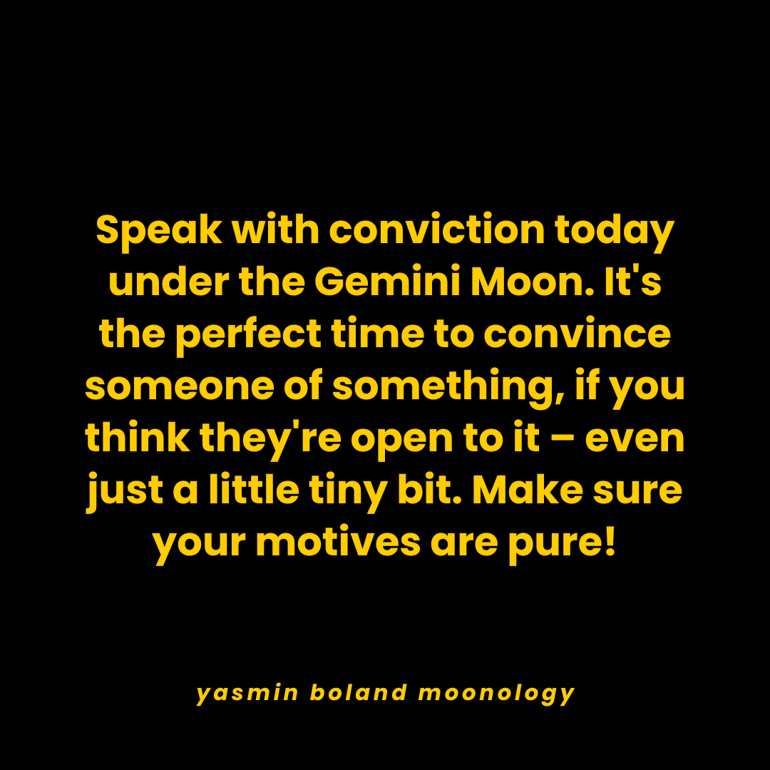 Speak with conviction today under the Gemini Moon. by Yasmin Boland | Aug 16, 2025 | Daily Moon Share this:Tweet Click to email a link to a friend (Opens in new window) Email Click to share on WhatsApp (Opens in new window) WhatsApp