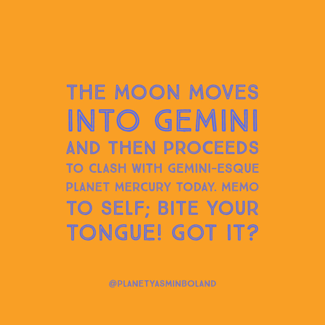 The Moon moves into Gemini by Yasmin | Feb 29, 2020 | Daily Moon You can read your daily, weekly and monthly stars at https://www.yasminboland.com Share this:Tweet Click to email a link to a friend (Opens in new window) Email Click to share on WhatsApp (Opens in new window) WhatsApp