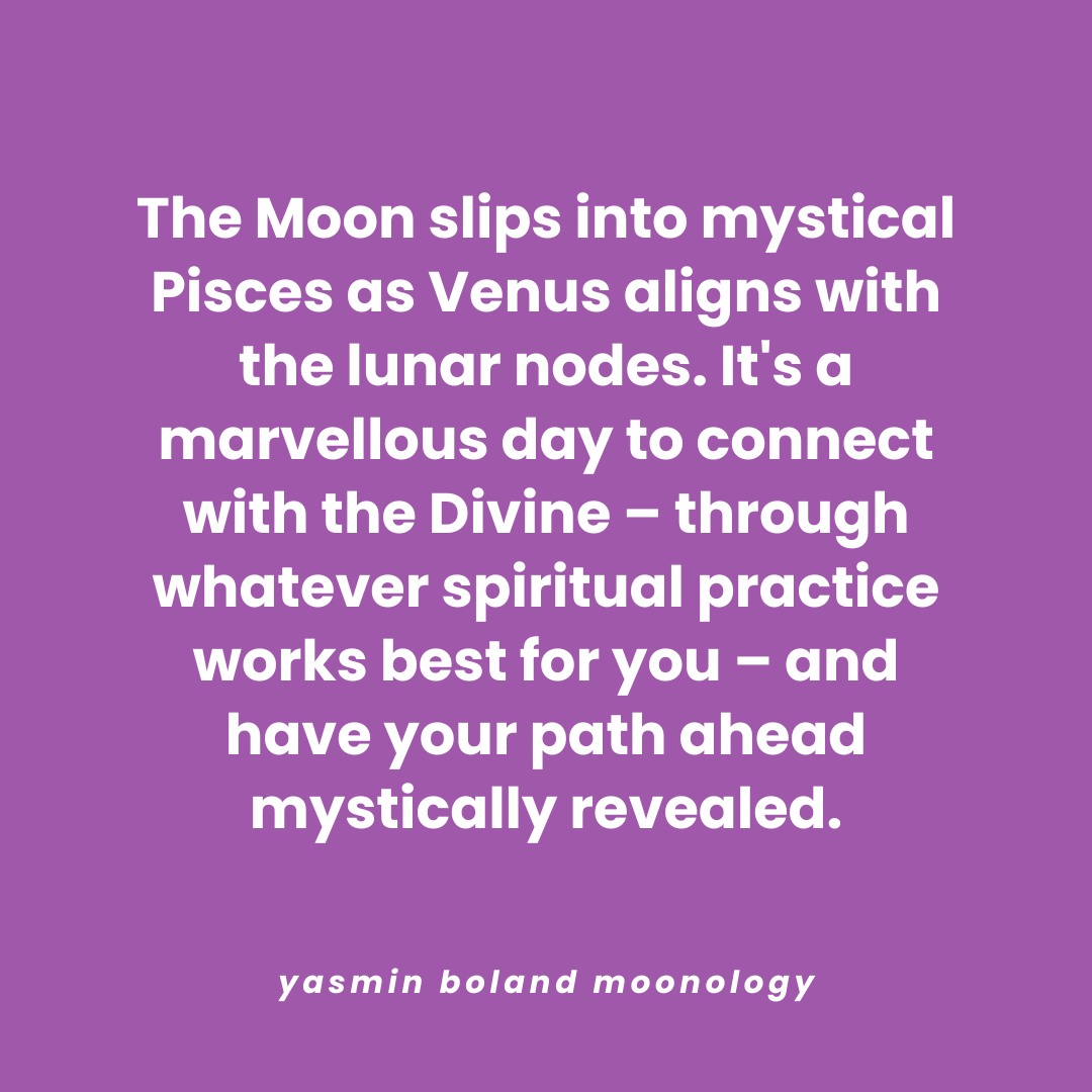 The Moon slips into mystical Pisces as Venus aligns with by Yasmin Boland | Oct 3, 2025 | Daily Moon Share this:Tweet Click to email a link to a friend (Opens in new window) Email Click to share on WhatsApp (Opens in new window) WhatsApp