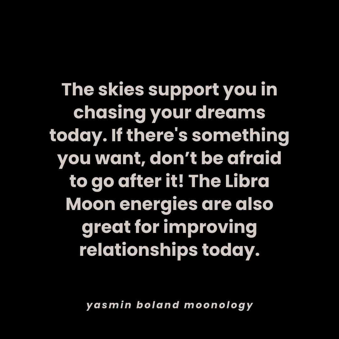 The skies support you in chasing your dreams today. by Yasmin Boland | Nov 15, 2025 | Daily Moon Share this:Tweet Click to email a link to a friend (Opens in new window) Email Click to share on WhatsApp (Opens in new window) WhatsApp