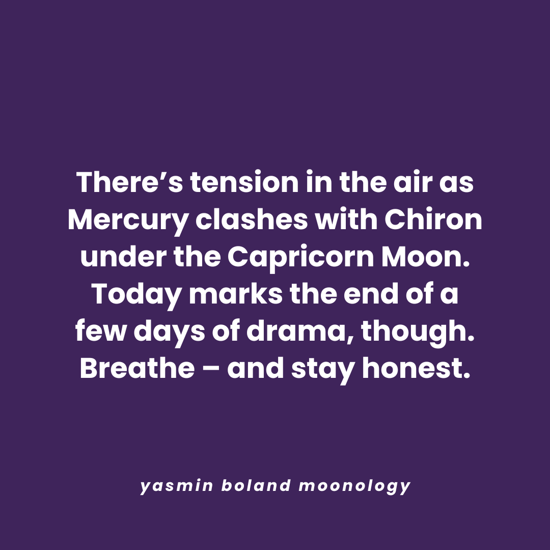 There’s tension in the air as Mercury clashes with Chiron by Yasmin Boland | Jan 15, 2026 | Daily Moon Share this:Tweet Click to email a link to a friend (Opens in new window) Email Click to share on WhatsApp (Opens in new window) WhatsApp