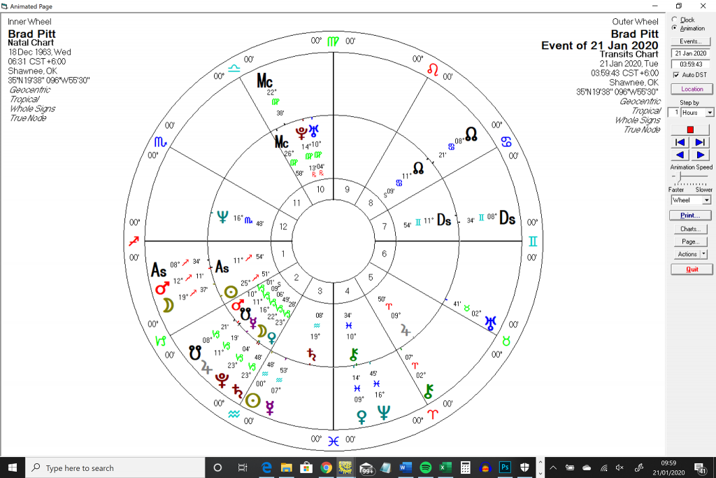 As much as I would like these two to reunite, I wonder if the whole thing is actually the “mia culpa” (Saturn) he’s been needing to say, the Saturn funny self-deprecation too, from this dude with 5 planets and points in Cap, and maybe in doing all that, the finally end (Sa/Pl on his Ve) of his most famous relationships with both Jennifer Aniston and Angelina Jolie (it wasn’t clear which ex wife we was referring to in his speech…)